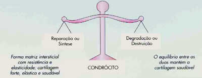 Os condrócitos são capazes de sintetizar colágeno, proteoglicanos e enzimas denominadas proteases. Estas células mantêm a homeostase da cartilagem normal adulta em que a velocidade de síntese da matriz extracelular iguala a velocidade de degradação. Dois processos estão envolvidos na gênese da osteoartrose os condrócitos produzem uma matriz com resistência e elasticidade diminuídas e o equilíbrio entre síntese degradação da matriz é rompido pela maior produção de proteases.